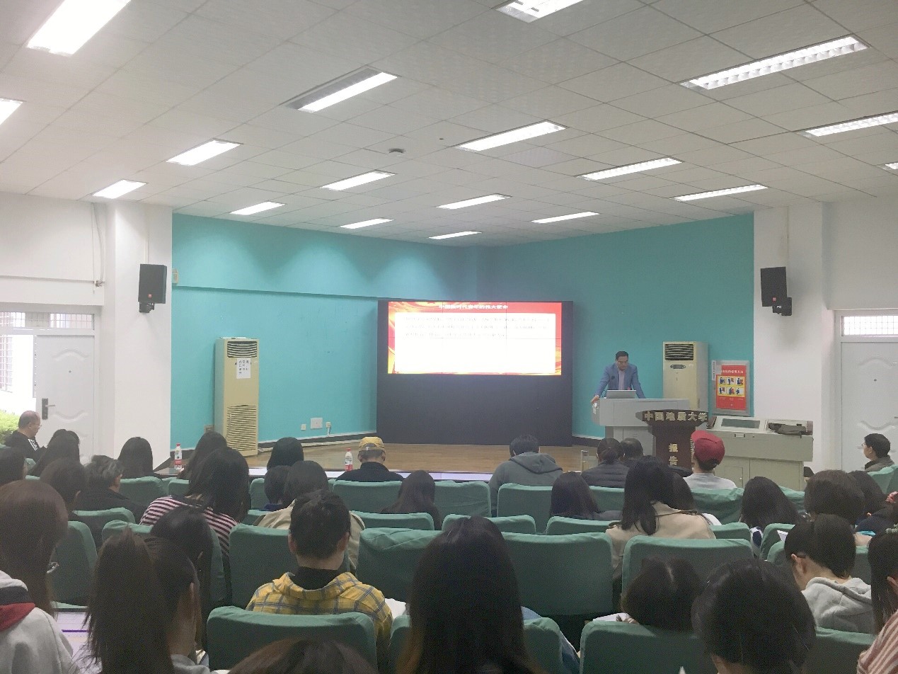 (通讯员 宋啟骏)2019年10月31日下午1:30,中国地质大学(武汉)91精品一区在北一楼报告厅召开“不忘初心·牢记使命”主题教育党课暨联合“支部主题党日”活动。学院党委书记张基得和院长张峻峰从“不忘初心·牢记使命”出发,围绕大国外交及科研路径向全院师生党员展开了此次党课。