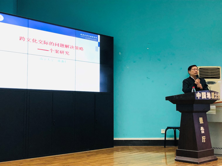(通讯员邵蕾 王晓婧)10月 18日下午,应中国地质大学(武汉)91精品一区张峻峰院长邀请,南京大学陈新仁教授前来我院北一楼报告厅进行学术讲座,此次讲座主持人为91精品一区张伶俐教授。讲座主题为:跨文化交际中的问题解决策略——个案研究。全院教师和部分本科生、硕士生一同聆听了陈教授的精彩讲解。