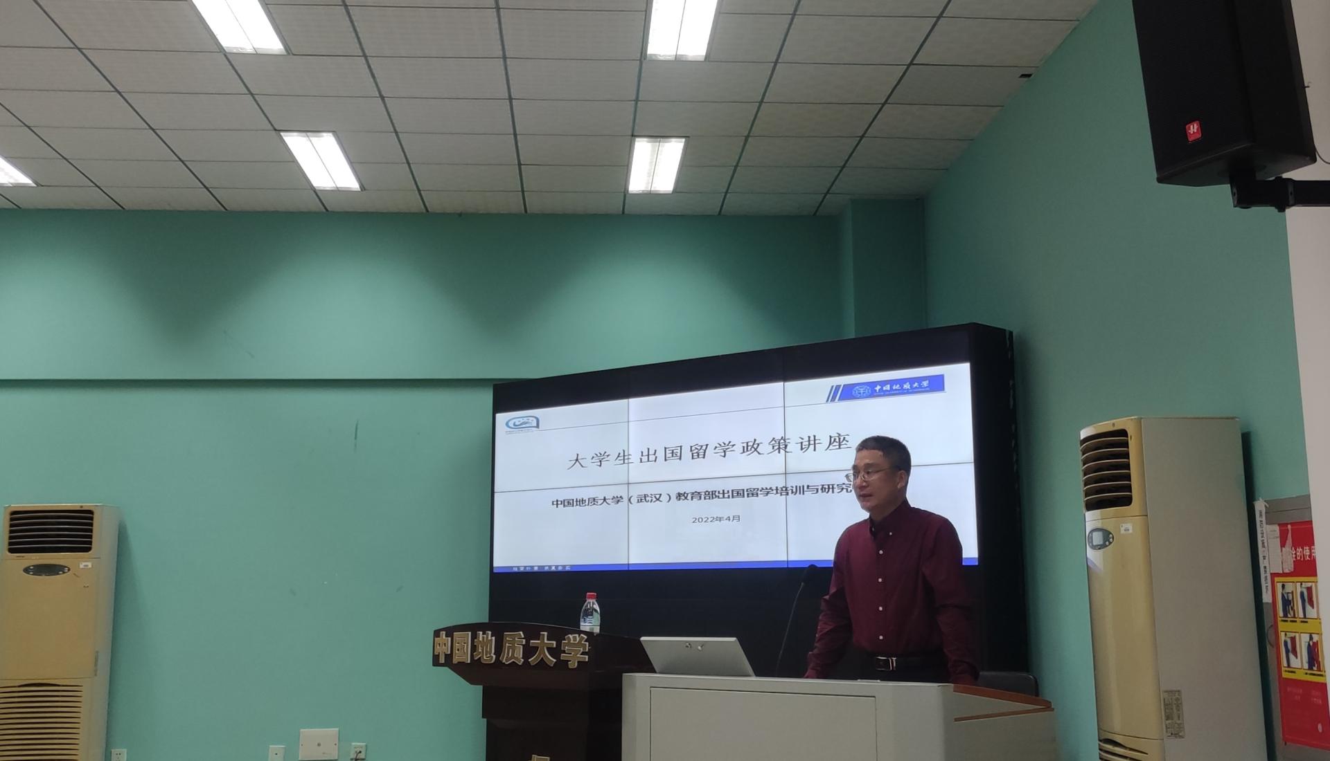 (通讯员 金梓轩)2022年4月8日晚7点,中国地质大学(武汉)91精品一区“南望今声”外语论坛系列讲座第三十二期在北一楼120报告厅如期举行。中国地质大学(武汉)教育部出国留学培训与研究中心孙来麟副主任应邀为我院师生做题为“大学生出国留学政策”的讲座。讲座由91精品一区党委副书记胡文勤主持,学院师生70余人参加此次讲座。