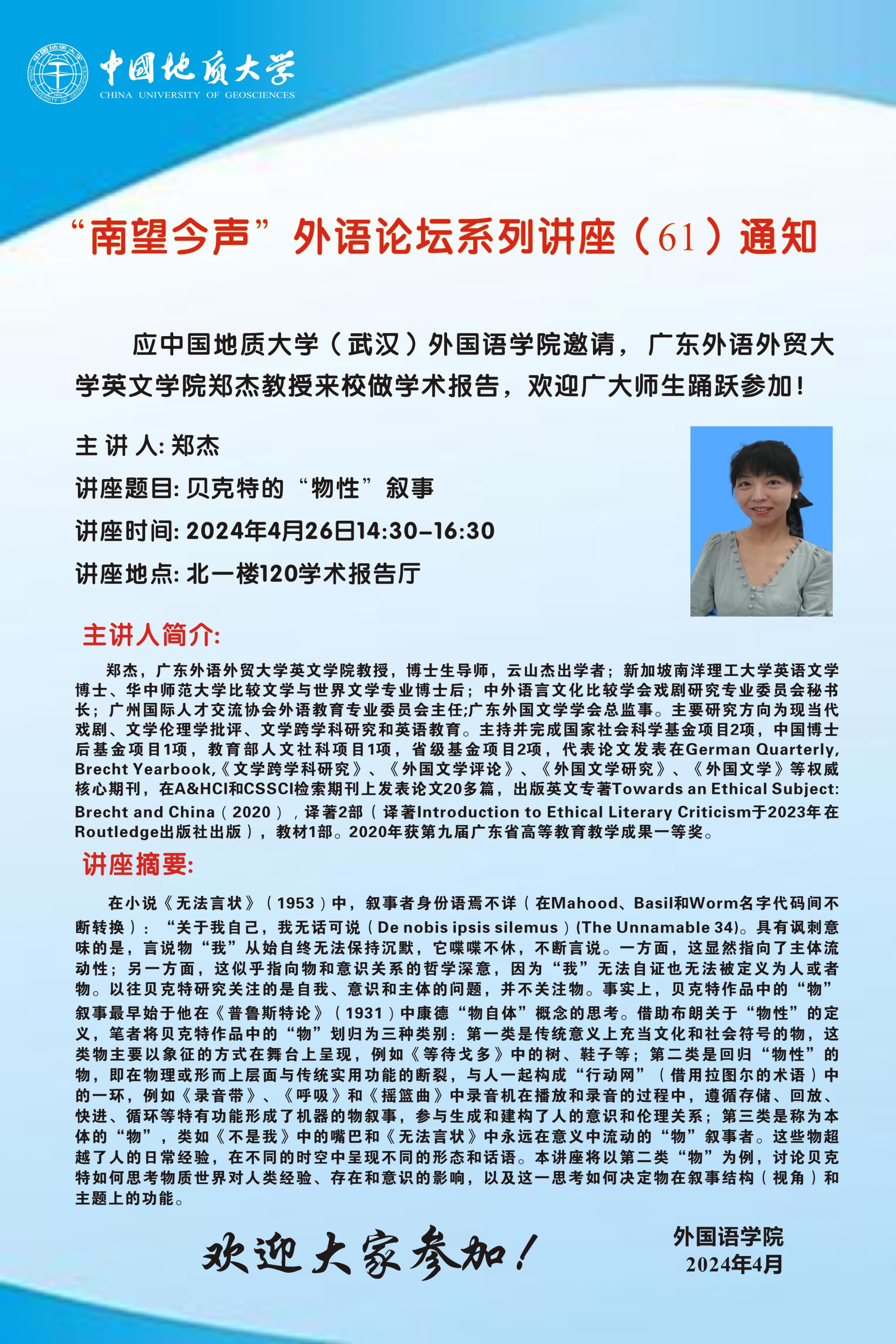 “南望今声”外语论坛系列讲座(61)通知