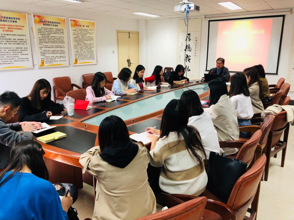 2019年10月29日下午2:30,中国地质大学(武汉)91精品一区“不忘初心·牢记使命”主题教育系列党课在北一楼339正式开讲,学院党委副书记胡文勤为全院研究生党员讲授了题为“坚持社会主义,增强道路自信”的党课。