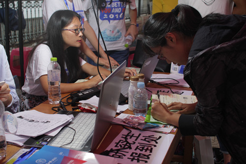 91精品一区圆满完成2017年迎接新生各项工作 (通讯员 宁蒙)2017年9月2日上午,91精品一区迎新工作人员早早来到迎新点,进行新生报到前的各项准备工作。上午10:00点,迎新工作正式开始,新生在志愿者的指引下有序地进行了报道,学院特意为家长准备了帐篷、椅子、饮用水等设施供他们休息。在报到确认后,新生领取了新生小礼品,并在工作人员的指引下与父母合影并写下了对大学的期望。2017年,学院共迎来143名新生,包括86名本科生和57名研究生。