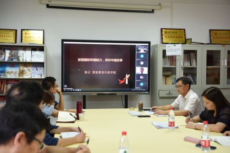 下午,研讨会继续在北一楼102党员之家举行。学院邀请国家教育行政学院教育领导和管理国际比较研究中心主任陈正副教授在线作《加强国际传播能力 讲好中国故事》的报告。报告会线上线下同步进行,学院近200名师生在线参会。陈主任和大家分享了国际传播的基本概念、不同国家之间的文化差异和国际传播策略。提出做好跨文化传播工作的建议,包括熟练掌握语言工具、接受复合型人才的专业培养、加强国际传播能力建设等,共同讲好中国故事。