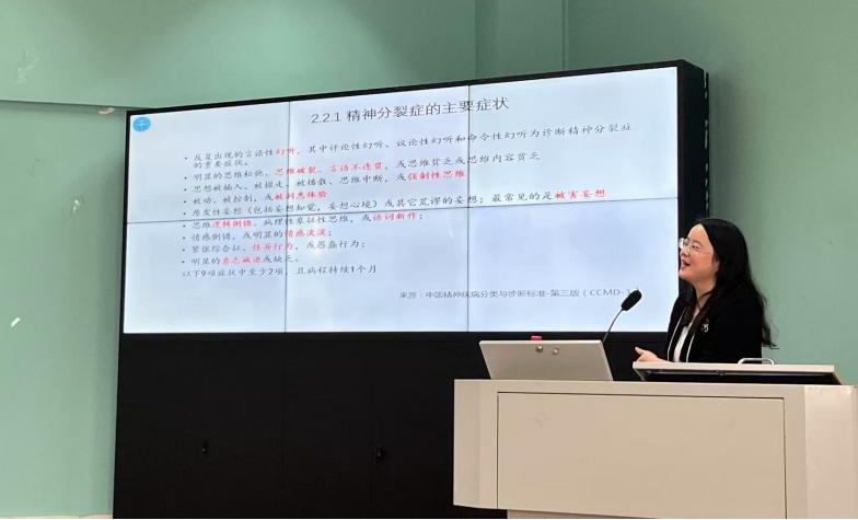 紧接着,周老师向老师们分享了大学生常见心理疾病的症状和早期表现,包括精神分裂症、抑郁症和双向情感障碍等心理问题,提醒班主任老师如果观察到有学生出现了反常的行为,应保持一定的敏感度,及时观察学生的举动并联系心理咨询师进行干预。
