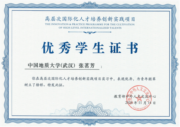 我院学子荣获教育部高层次国际化人才培养创新实践项目优秀学生证书