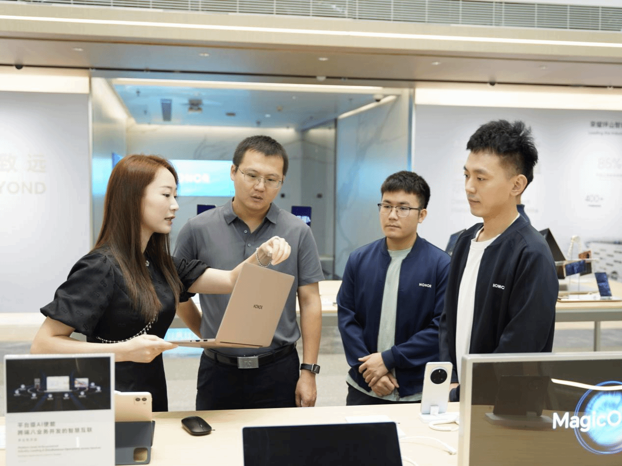 团队一行还参观走访荣耀终端全球总部和深圳市蓝天教育培训学校等两家企业。在荣耀终端,公司招聘经理赵智勇详细介绍了荣耀终端发展历程和人才理念,2024届毕业生唐湘林分享了一年来在荣耀工作的经历和收获,他在分享中提到“艰苦朴素,求真务实”的校训精神是他工作中踏实学习、务实发展的动力源泉,快速调整、快速适应、快速反应是他能不断成长的重要因素,他期待更多的学弟学妹加入荣耀。双方就校企人才培养模式与岗位能力适配性进行了深入探讨,余尚蔚代表学院感谢企业对学院毕业生的培养,并邀请企业秋招到学院开展就业育人和校园招聘。