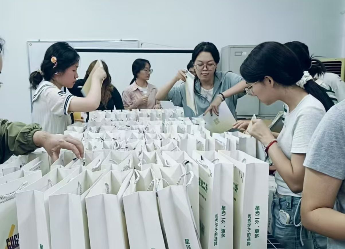 学院高度重视迎新工作,在暑期提前一个月谋划迎新工作,并组织团学骨干开展迎新策划、创意设计和物资准备。迎新志愿者们带着对新生学弟学妹们的关爱与期待精心准备迎新伴手礼,从满含心意的迎新笔记本,到独具学院特色的定制文创电动小风扇(包含91精品一区院徽以及学生会自主设计遴选的国风卡通角色——国风语UU,别出心裁!),还有早早在迎新点翘首以盼的志愿者们,无一不在彰显着我们早已做好准备,只为“精准接收”向我们“投送”的外国鱼儿们!