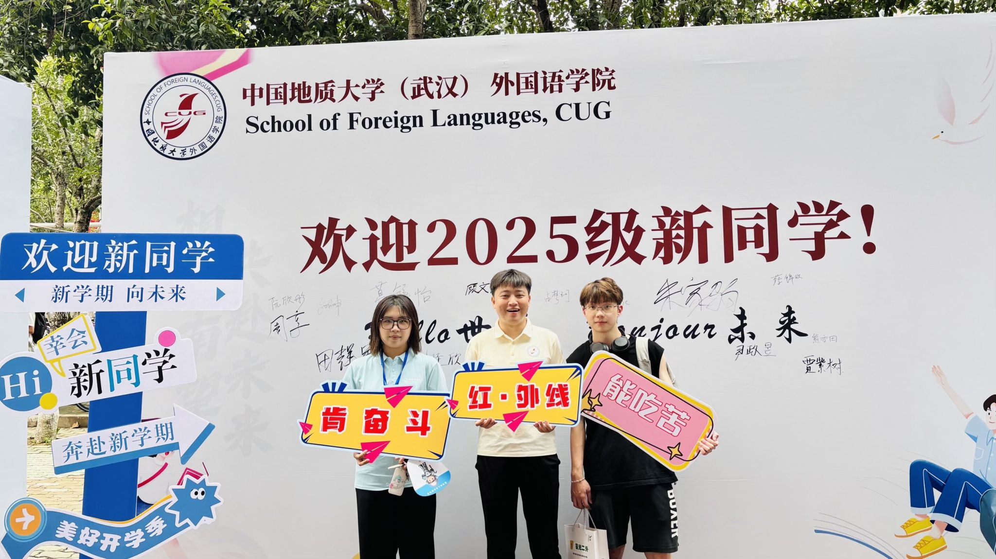 面对新学期,新生们也都满怀期待与憧憬!2025级新生王婧怡同学说道:“在迎新点报到的时候,学长学姐们非常热情,学院还为我们准备了定制的迎新伴手礼,我从中感受到了外院大家庭得温暖。接下来,我希望自己能好好精进英语水平,期待能流利地用英文和同学交流。心情很激动,很期待未来的生活。”来自河南的崔钰爽同学则表示:“我的心情比较紧张,又比较期待与激动。期待在这里开启全新的生活。”