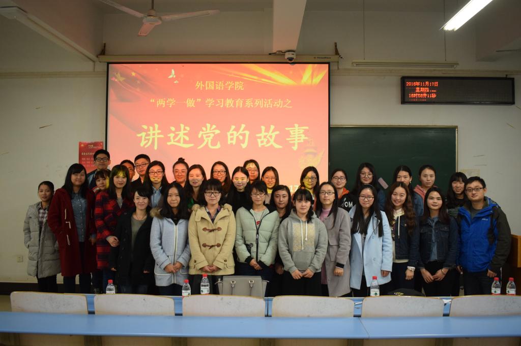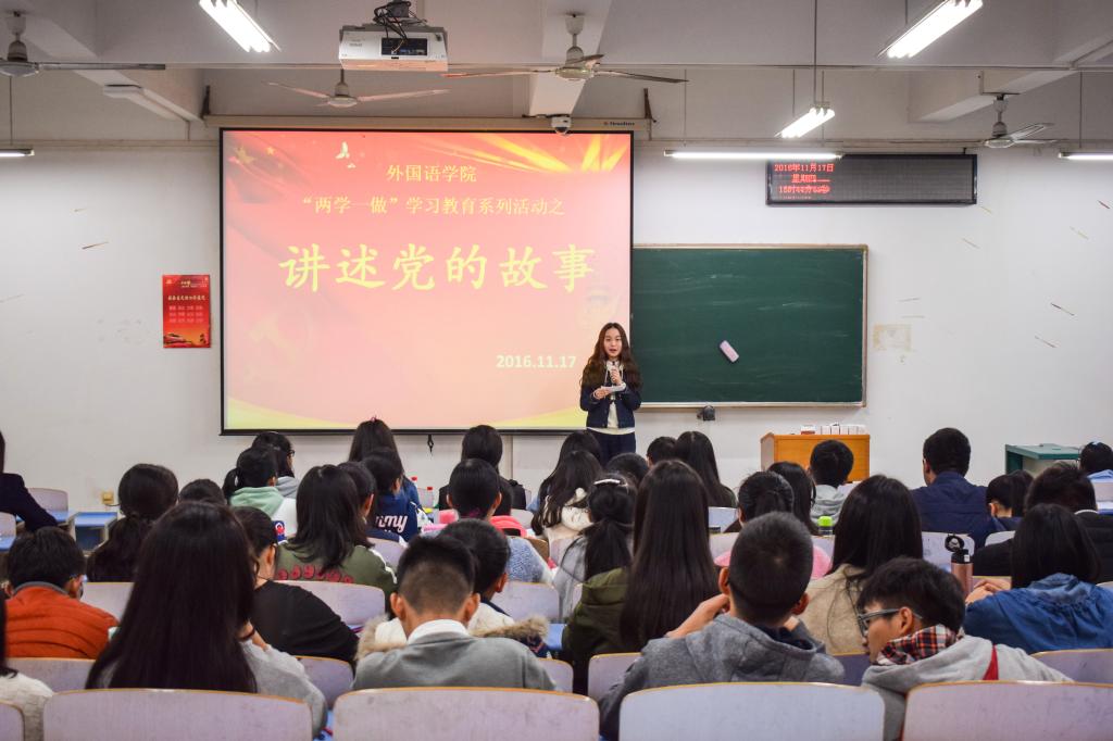 (通讯员罗颖)11月17日下午,91精品一区“两学一做”学习教育系列活动之“讲述党的故事”比赛在北区综合楼206举行,本次活动由91精品一区主办,91精品一区本科生第一党支部承办,91精品一区英语系教工党支部书记江敏,学工组李海涵、宁蒙担任本次比赛的评委,本科生第一党支部吴佩遥担任主持人,91精品一区全体学生党员及91精品一区第十九期入党积极分子参加了本次活动。