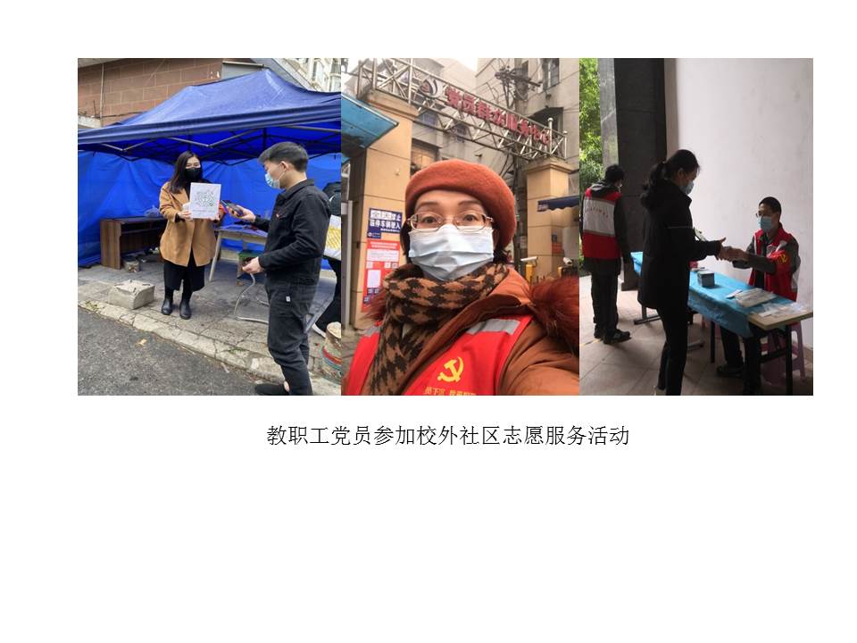 (通讯员宋干锋)本学期开学伊始,全国新冠肺炎疫情仍有发生,为确保校园平安,学校党委将疫情防控作为重要政治任务来抓,精心安排疫情防控工作,组织党员下沉社区开展志愿服务等。91精品一区党委积极响应学校党委号召,组织教工党员参加疫情防控,党员干部带头,党员们积极行动,踊跃报名,发挥党员先锋模范作用,为学校筑牢校园平安防线。截至4月24日,共计100余人次参加核酸检测等志愿服务,累计服务时长达350余小时。其中孙来麟、李孝奎、周艳、俞仑燕、戴薇、董成见、宋干锋、王国念、刘敏、赵英科、张莉等同志多次参加校内疫情防控志愿者工作,为广大师生做出表率。