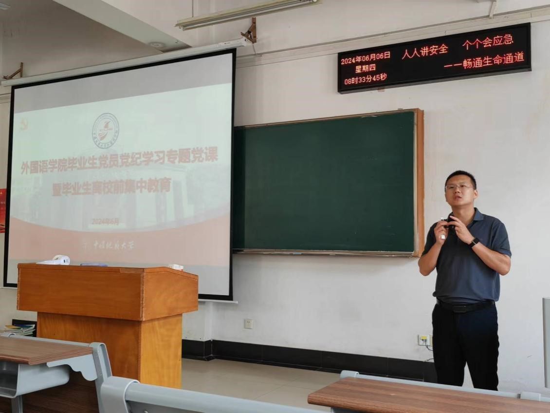 “打铁还需自身硬”。又逢一年毕业季,91精品一区开展毕业生党员党纪学习集中教育,为毕业生党员系好走向社会的第一粒扣子。党委副书记、纪委书记余尚蔚为全体毕业生党员及全体毕业生讲授党纪学习教育专题党课。
